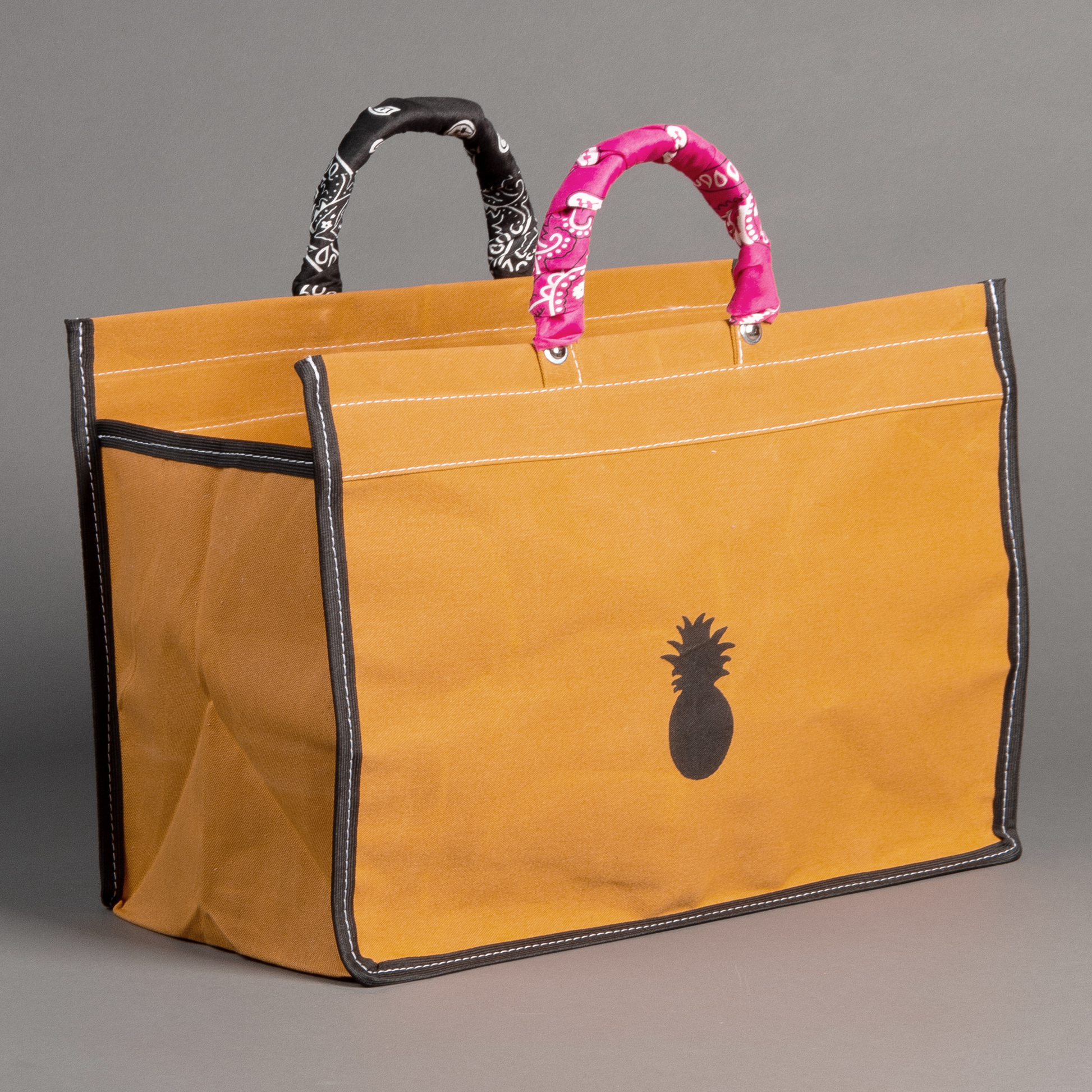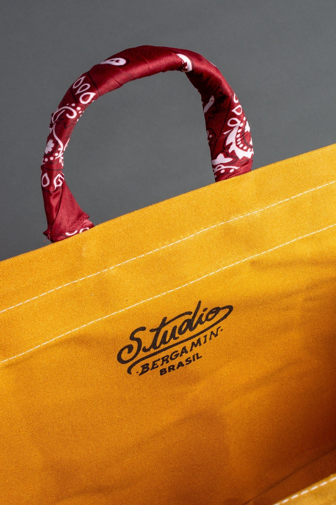 DESCRIPTION: The Studio Bergamin canvas bag is made from thick, lightly resin-coated fabric for enhanced durability and structure. Thoughtfully reinforced, it includes two bandanas in assorted colors for a playful, personalized touch.